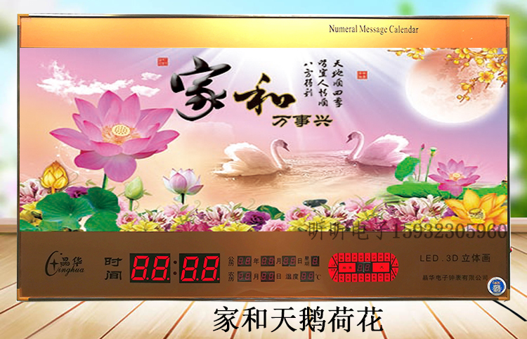 新房客廳裝飾日歷掛鐘,家和風(fēng)景萬年歷,超薄七彩燈光更漂亮